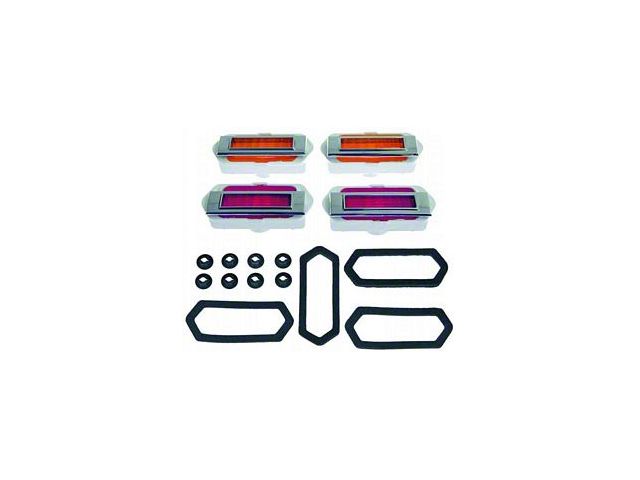 The side market lights on your 1969 Camaro can become worn and damager over time, possibly getting a faded lens or getting scratched up from outside contact. Rick's Camaros wants to help you renew your F-Body's exterior and give you a great replacement option. This complete side market light kit is assembled in-house to ensure that you are getting the best quality hand-picked pieces for your Camaro's restoration. This side market light kit includes two front and two rear chrome die cast bezels, two front amber and two rear red side marker lens assemblies with text and script, and all the necessary original die cut foam seals and mounting hardware. This 20 piece kit is just what your F-Body needs. We've done restorations for years and know the best parts out there and this side