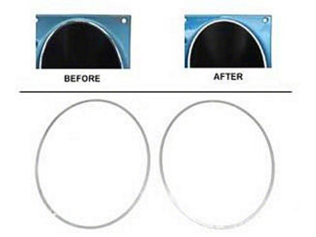 The speedometer and fuel gauge bezel trim applique can become worn down and dingy on your Chevy Camaro's dash. Rick's Camaros is happy to offer this speedometer and fuel gauge bezel chrome trim applique set for your 1967 or 1968 Camaro's instrument carrier housing. Featuring high tech, ultra thin chrome for restoring your original plastic headlight door and grille, this applique set is die cut to exact shape, with an integrated adhesive back that will make installation a snap! This set is guaranteed to make your interior dashboard look like new on your F-Body. Trust Rick's Camaros for all of your restoration and replacement needs for your 1967 or 1968 1st gen Camaro!