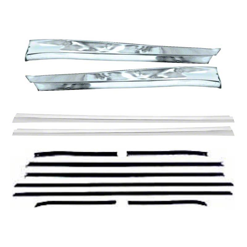 Construction and Appearance. Crafted from quality stamped aluminum, this molding set features a polished chrome plated finish reflecting the original high-gloss style found on RS Camaros with the custom exterior package. Its sturdy construction ensures durability and long-lasting corrosion resistance while maintaining the vintage aesthetic.