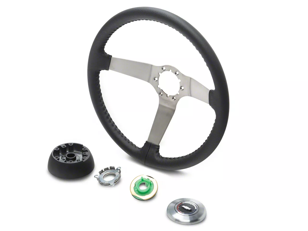 Complete with all new parts - steering wheel, adapter, horn parts and mounting kit, show quality horn button.