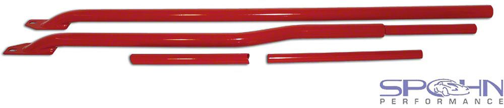 Put an end to squeaky dashboards and cracking quarter panels on convertibles, and seriously enhance your chassis' handling and launch performance. Our "truss-style" framing system is constructed of 1.75" x .120" wall DOM tubing for serious, uncompromised rigidity. The frame rail connects to the front rear lower control arm mounting area and runs the entire length of the rocker panel, it ends at the rear side of the front wheel well. The main shaft is formed to fit the contour of the floor board, providing for weld contact area the entire length of the frame shaft, and no ground clearance loss. We don't stop there. Mid-shaft we install a "Y" off frame that connects the main frame shaft to the beefy front sub-frame at the transmission crossmember mounting area. This provides for the u