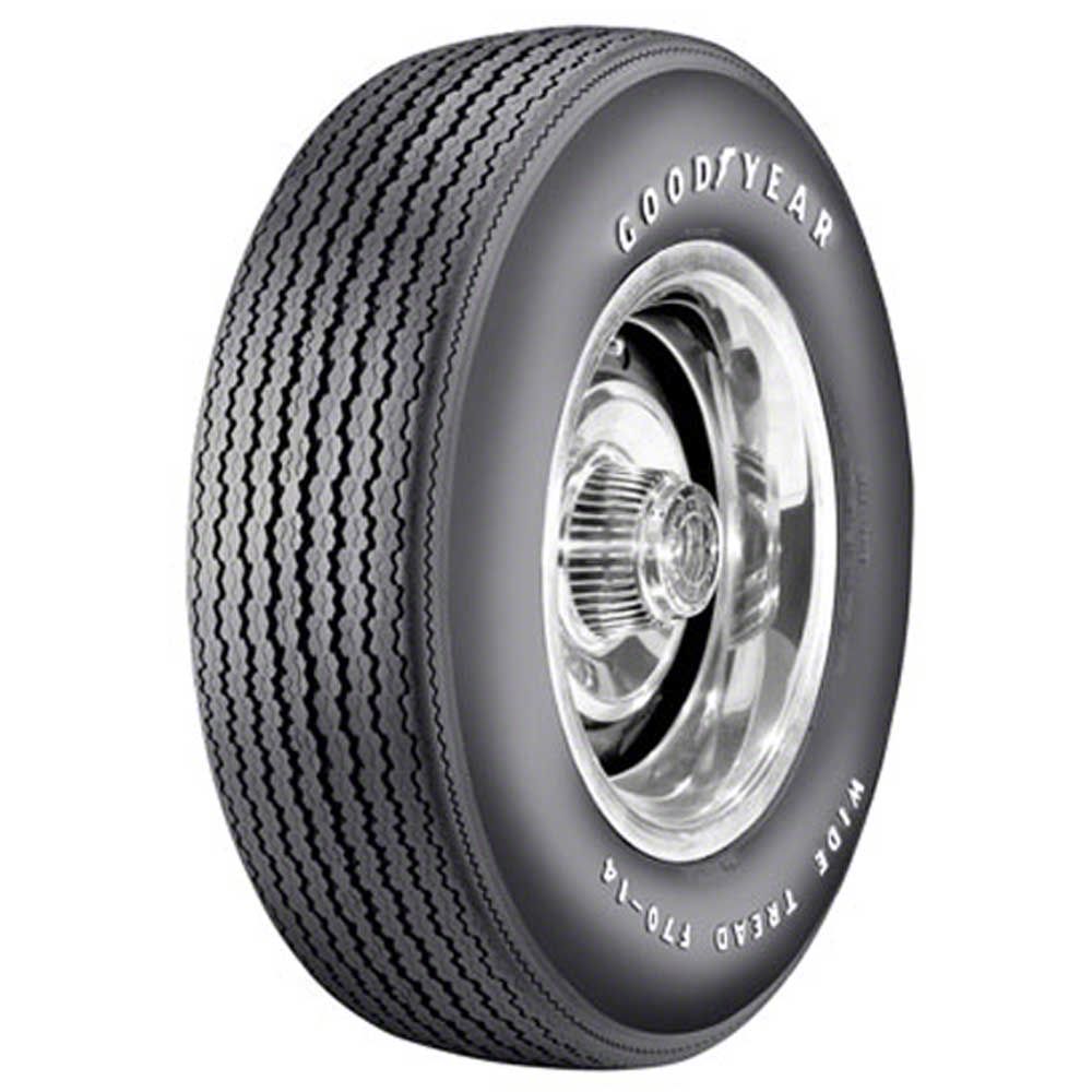 Goodyear F-70-14 raised white letter PolyGlas tire reproduced from original mold designs in correct 2+2 or 4 ply polyglass with modern technology and materials. **Shipped UPS Overweight DIRECT FROM MANUFACTURER**