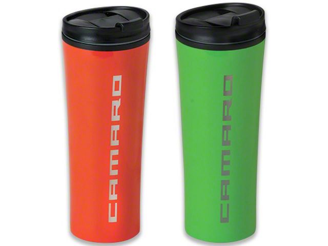16oz. insulated tumbler has a unique leak resistant lid. Camaro script screened on the side . Not intended for use in dishwasher or microwave.