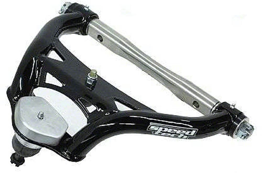 The Tubular Upper Control Arms are CAD designed Mandrel bent and all components are either laser cut or CNC machined for exact tolerances. They are made from 1.25" seamless tubing with a wall thickness of .125. The control arms come complete powder coated with stainless steel cross shafts, Acetron GP® type bushings and Urethane Bump Stops.
