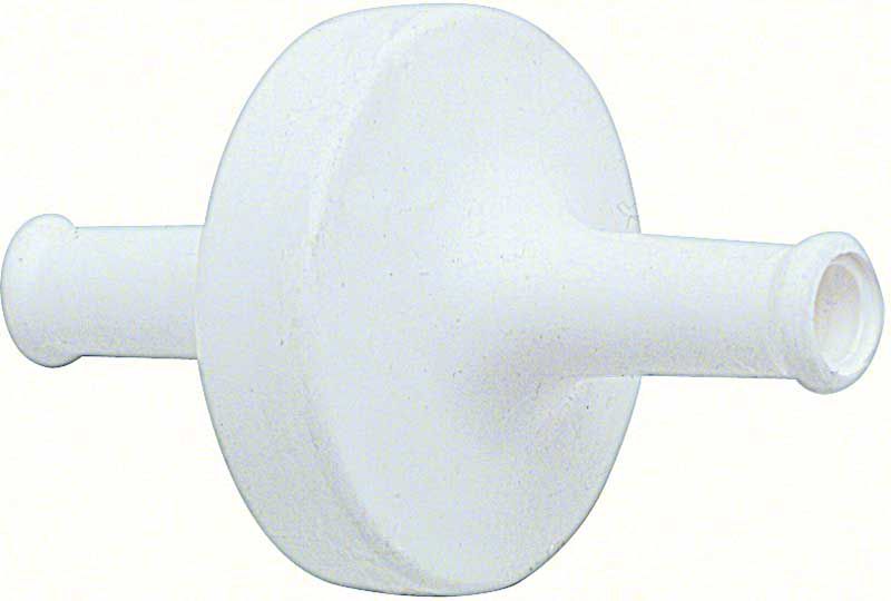 Reproduction of the original filter assembly manufactured in injection molded ABS to factory specifications. This filter is necessary for the correct operation of 1968-69 GM models with the concealed headlamp system. The hose line filter is located between the check valve and the vacuum pressure reservoir. Includes correct "AC" marking on filter.