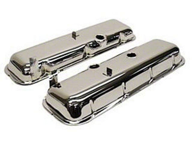 Simply the best show quality valve covers available. Short style chrome valve covers without the booster dent includes spot welded baffles & wire towers.