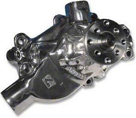 Beat the heat with this polished aluminum Stewart hi-flow water pump. Your Camaro's engine will run up to 40ºF cooler due to internal modifications on this water pump that produce an impressive 41% more coolant flow. It uses new, original equipment castings for a bolt-on fit and is compatible with all factory brackets. Must be used with Robertshaw 180ºF hi-flow thermostat, P/N EP-461. Manufacturer's 1-year warranty.