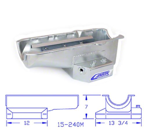 Road Race Oil Pan. The 1980-1985 Small Block Chevy Road Race Oil Pan with Right Side Dipstick; Zinc Plated is engineered to optimize oil management during high-performance driving conditions. Designed to fit Small Block Chevy engines with right side dipstick, it effectively handles oil recovery and sump capacity to ensure consistent lubrication and engine protection in demanding road race environments.