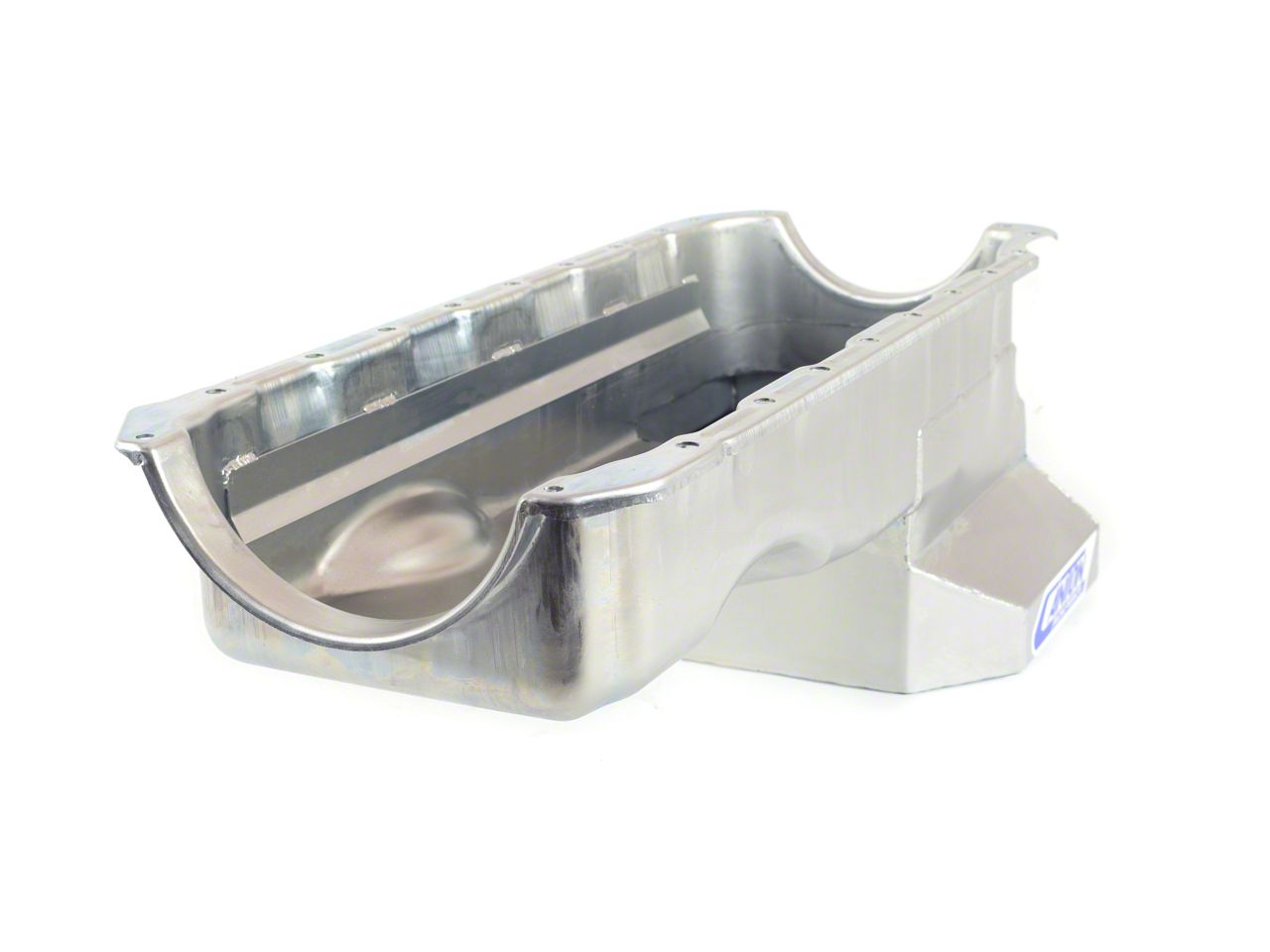 Construction and Appearance. Crafted from 16 gauge steel, this oil pan features a durable clear zinc chromate finish that resists corrosion while offering a professional silver appearance. The robust construction ensures longevity and structural integrity during high-performance applications.