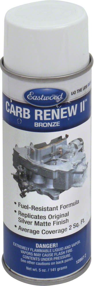 Newly reformulated Carb Renew2 has better fuel resistance and durability than the original formula, but still maintains that factory silver look - Restore the OEM look found on just about any carburetor. Carb Renew2 is a translucent acrylic enamel that is resistant to fuel and most additives. While your carburetor is apart and all jets are removed, simply spray Carb Renew2 on the exterior of the thoroughly cleaned bowl cover and main body. Produces a natural 3-8% gloss. Carb Renew2 comes in a 5 oz. aerosol, enough to cover about 2 sq.ft.