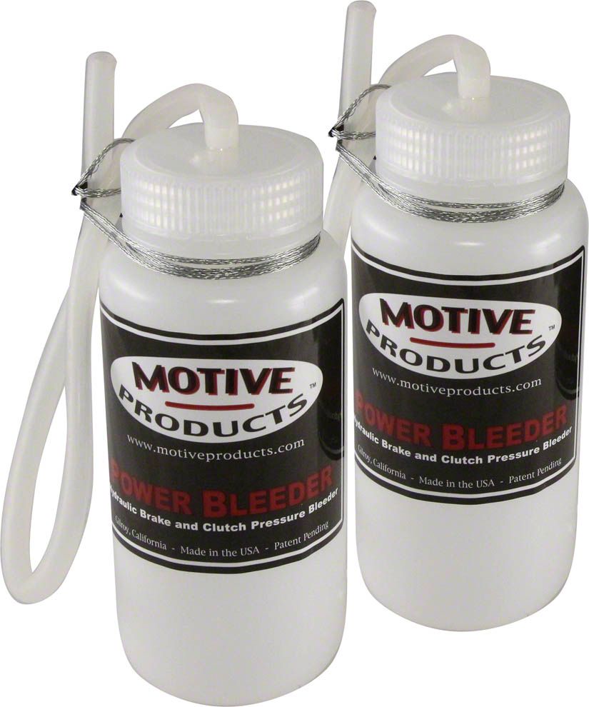 The Motive Products Catch Bottle Kit is the perfect companion to the Power Bleeder and makes the job easier and cleaner. The kit includes two 500 ml polyethylene bottles with tube to attach to the bleeder nipple, steel lanyard to hang from suspension parts, and a top vent to park tubing when not in use.