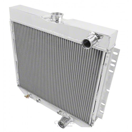 Your classic Ford can get hot... really hot! Driving and idling in traffic on 90+ degree summer days can push your stock cooling system to its limits... and unfortunately, beyond. Factory brass radiators are barely satisfactory at transferring heat, which is why they overheat when you least expect it. Why take chances with your valuable engine? Step up to Champion's all-aluminum, high efficiency radiator. Aluminum alloy is a far superior metal to the original equipment copper-brass construction because it dissipates (or "radiates") heat much more quickly and cools down much more rapidly. Heat transfer from your engine to the atmosphere is greatly increased, thereby lowering the temperature of the engine coolant dramatically. An aluminum radiator will out-cool a copper brass radiator of sim