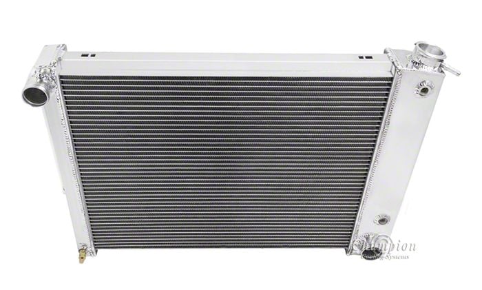 Your 1967-1969 Camaro can get hot...really hot. Bumper to bumper traffic, blistering summer days, and daily driving can add up. The factory copper and brass radiators were barely satisfactory at transferring heat which is why Chevy engine will overheat. Why take chances with your valuable Chevy engine? Champion Aluminum Radiators from Ricks Camaros provide outstanding perofrmance at an excetional value. Aluminum is a far superior to the original copper and brass because it dissipates heat and cools down much more quickly. That means better protection for your investment. Champion's aluminum radiator is 50-75% lighter than your factory copper and brass radiator unit and cools up to 40% better. Plus, the the incredible price makes this Champion radiator an exceptional value. Trust Ricks Cama