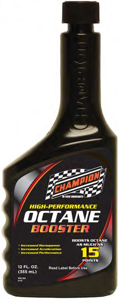 • Champion Octane Booster is the only octane booster offering andvanced combustion technology for superior performance in a street legal formula. Use Champion octane booster with every fill-up to boost the octane level in your gas up to 15 points (1.5 RON). Safe and effective for use in all gasoline engines.