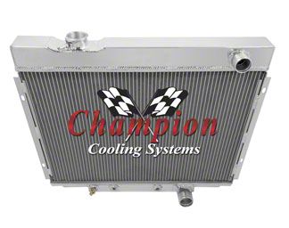 Your Ford Galaxie can get hot... really hot. Idling in traffic, 90+ summer days, and just driving can add up. The factory brass radiators were barely satisfactory at transferring heat which is why they overheat when you least expect it. Why take chances with your valuable engine and step up to Champion Aluminum High Efficiency Radiators. Aluminum is a far superior metal to the original equipment (OEM) copper-brass because it dissipates, or ?radiates? heat much more quickly and cools down much more rapidly. Transferring heat from your engine to the atmosphere, thereby lowering the temperature of the engine coolant is the sole purpose of a radiator, and an aluminum radiator will out-cool a copper brass radiator of similar size and construction by