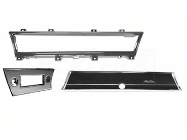 1966 Chevelle or Malibu is a true classic muscle car. Ecklers Chevelle offers this high quality Chevelle And Malibu Dash Bezel Kit. This kit is made up of speedometer bezel, radio bezel and glove box name plate. The speedometer and radio bezels are chrome plated, for a durable long lasting finish. This kit is the perfect way to complete, or update your interior. Do not settle for just any replacement interior part for your 1966 Chevelle or Malibu, use only the best parts for replacement or your restoration project. Trust Ecklers Chevelle for all your part needs.