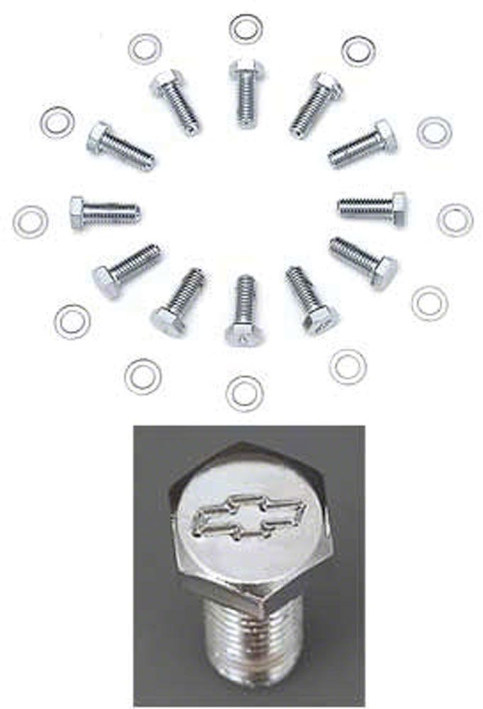 Dress up your Chevelle with a bowtie intake manifold bolt set from Eckler's Chevelle. The set features a Chevy Bow-Tie emblem stamped onto the head of each bolt. High polished heavy chrome plated. Set includes washers. Count on Eckler's for all your Chevelle and Malibu parts needs. Designed for : 1964, 1965, 1966, 1967, 1968, 1969, 1970, 1971, 1972
