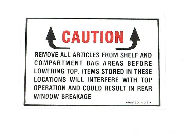 Decals offer a finishing touch for your original or restored 1964, 1965 or 1966 Chevelle Convertible. Eckler's has all the decals you need, like this convertible top warning decal, to make your classic shine at a local show. Trust Ecklers Chevelle to bring you only the best parts available, always at the best possible price.