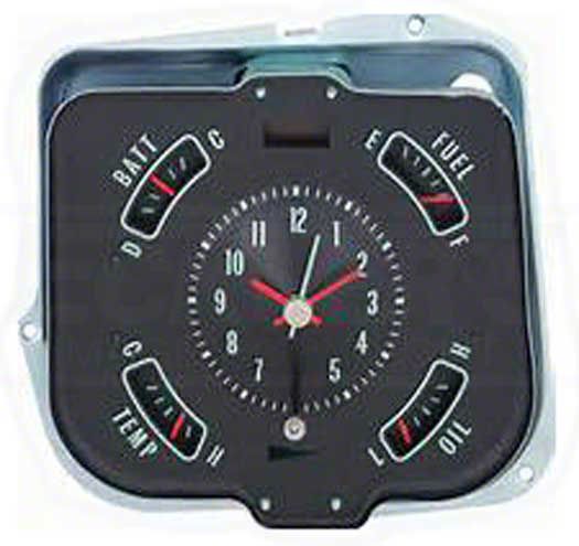 1968 Chevelle is a great car for a restoration project. With it's clean lines and iconic stature, these cars are a true American classic. Ecklers Chevelle offers this high quality Gauge Cluster, Without Warning Lamps. This gauge cluster is made from quality stamed steel. with correct silk-screened face, with correct colors and font. This cluster includes fuel, temperature, oil and battery gauges, with the right side turn signal arrow included and a quartz movement clock. Don't settle for inferior quality parts for your 1968 Chevelle, use only the best quality parts. Trust Ecklers Chevelle for all your parts needs.
