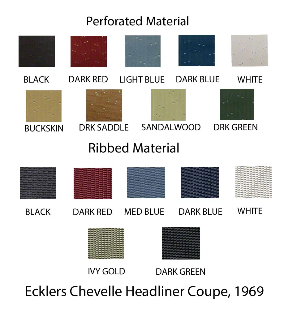 A new headliner adds the perfect finishing touch to your restored 1969 Chevelle's interior. After years of use, original headliners often decay, discolor and begin to fall apart. In addition, the headliner wire supports often rust and bleed through the headliner material, taking away from the pristine looks of your classic interior. Eckler’s Chevelle & Malibu is happy to offer this new headliner, by PUI Interiors, which is correctly sewn and features the correct material and pattern .