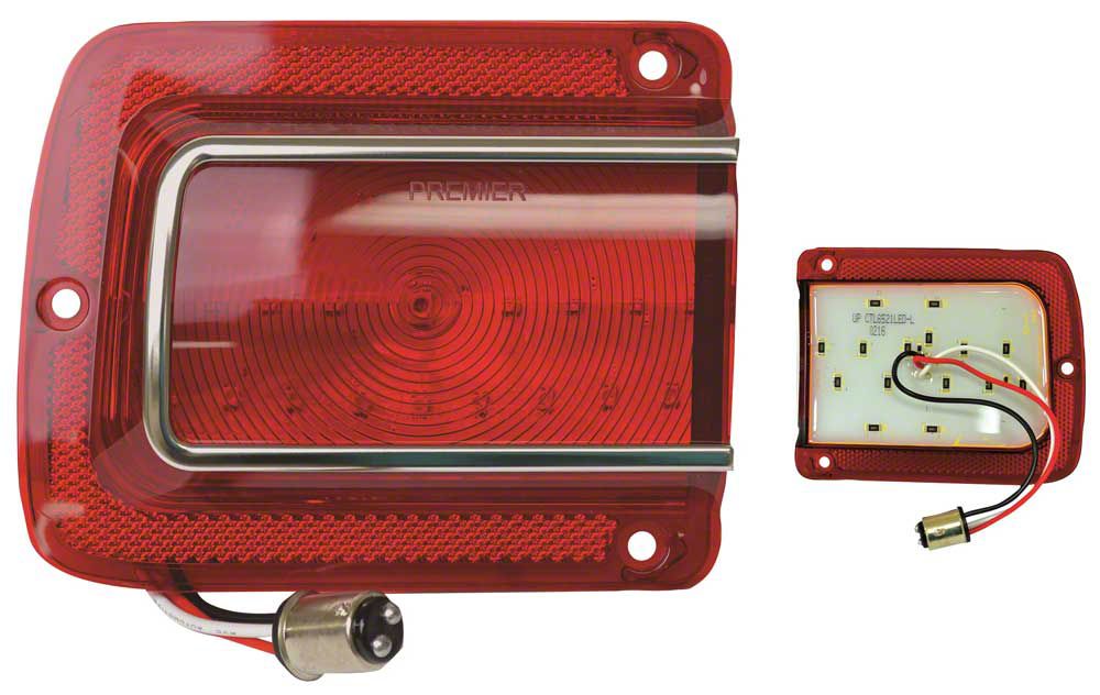 1965 Chevelle and Malibu tail light lenses deteriorate over time. Exposure to the elements and heat make them cracked, brittle and discolored. Eckler's Chevelle now offers a replacement tail lamp with the added safety of super bright LEDs. This lamp looks and fits like the original and even has the correct polished stainless. The difference is in the bulbs. Once installed, the LED lights provide clean bright light, increasing your classic's visibility to other drivers. Play it safe. Install 65 Chevelle and Malibu LED tail lights from Ecklers Chevelle today!