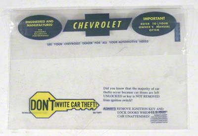 This Chevelle reproduction owners manual plastic bag has been manufactured to original factory specifications using today's modern manufacturing techniques. You will find the fit, finish and function will work superbly for your restoration. In addition, using a reproduction owners manual plastic bag from Eckler's will add authenticity and value to your Chevelle.