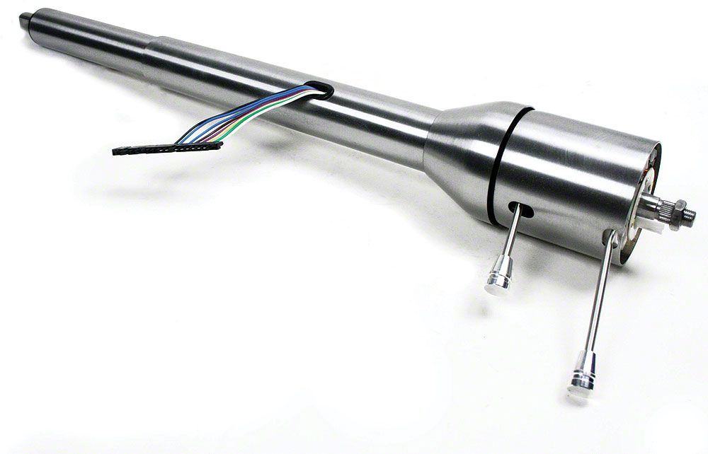 Construction and Appearance. Crafted from durable paintable steel, this steering column is designed for customization to match your vehicle's interior. The robust steel construction ensures long-lasting performance while allowing finishing flexibility. Its design includes all essential mechanisms such as a self-canceling turn signal and 4-way flashers, complemented by a standard dress-up kit to enhance visual appeal.