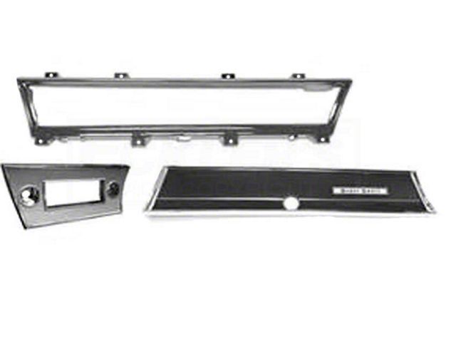 1966 Chevelle Super Sport is a true classic muscle car. Ecklers Chevelle offers this high quality Chevelle Super Sport Dash Bezel Kit. This kit is made up of speedometer bezel, radio bezel and glove box name plate. The speedometer and radio bezels are chrome plated, for a durable long lasting finish. This kit is the perfect way to complete, or update your interior. Do not settle for just any replacement interior part for your 1966 Chevelle Super Sport, use only the best parts for replacement or your restoration project. Trust Ecklers Chevelle for all your part needs.
