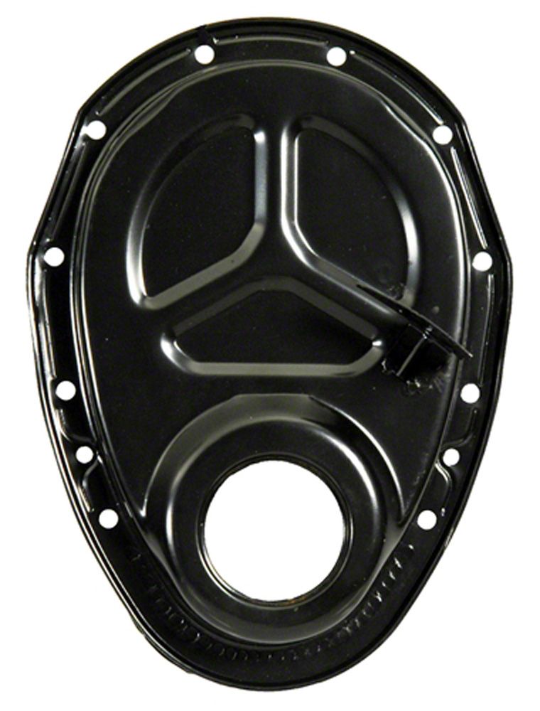 Correct Reproduction of the original GM timing chain cover with welded on timing tab for 1969-70 Chevelle with 8" harmonic balancer . GM replacement timing chain covers use a timing tab which bolts on with the timing chain cover bolts. Many aftermarket timing covers are very thin, chrome plated and have fancy logos stamped into them. If you are doing your Chevelle correct, you will need this quality reproduction from Eckler's Chevelle.