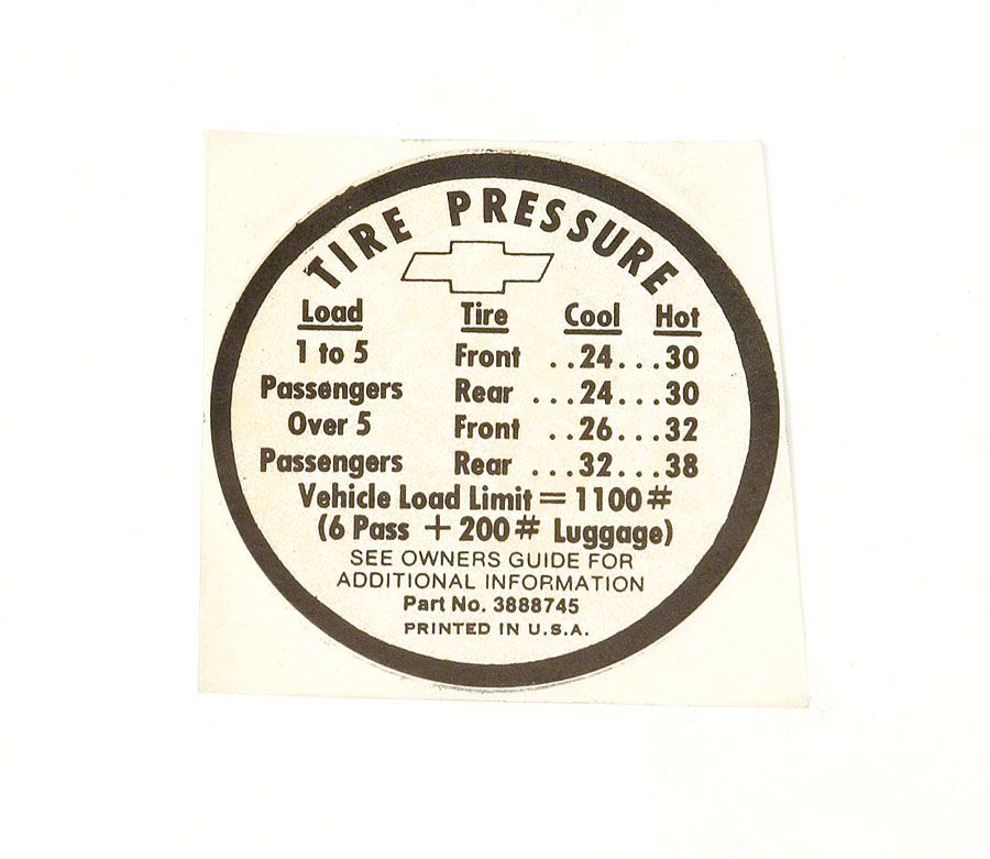 Tire Pressure Decal (1966 Chevelle; 1966 Malibu)