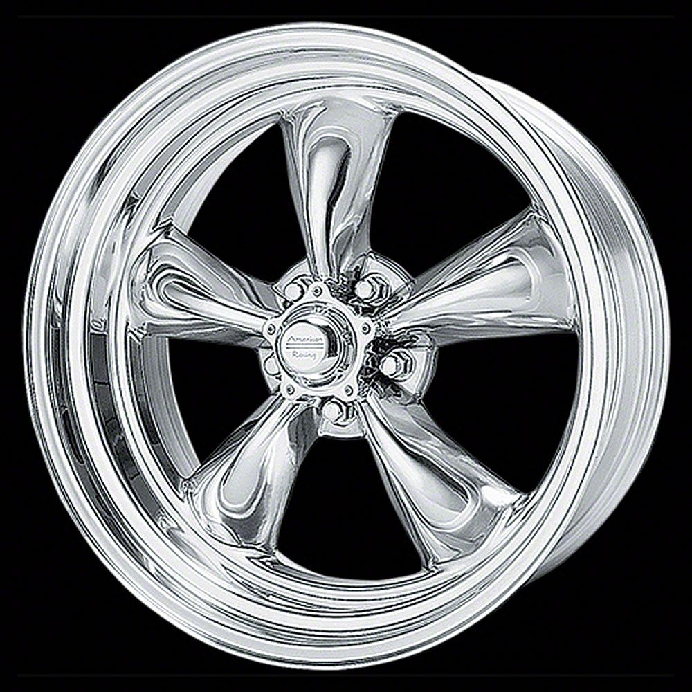 As the modern version of the original American Racing Torq-Thrust D wheels that started the custom wheel revolution in the 1960s, these Torq-Thrust II (Series 505 RWD) wheels have the same classic 5-spoke design. These spokes though, are longer and more tapered while the rim has an eye-catching extra step. This styling update on the Torq-Thrust II wheels produces a larger center opening for better viewing and ventilation of performance disc brakes and rotors. The two-piece aluminum alloy construction of Torq-Thrust II wheels allows a greater range of available sizes and the fully polished wheel surfaces give them a real head-turning appearance. A triple chrome plated center cap is included. Torq-Thrust II wheels use chrome acorn-style conical lug nuts for installation