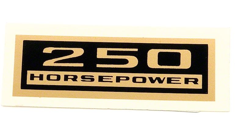 Cleaned Item Name: Valve Cover Decal, 250 hp (64-67 Malibu; 64-72 Chevelle)