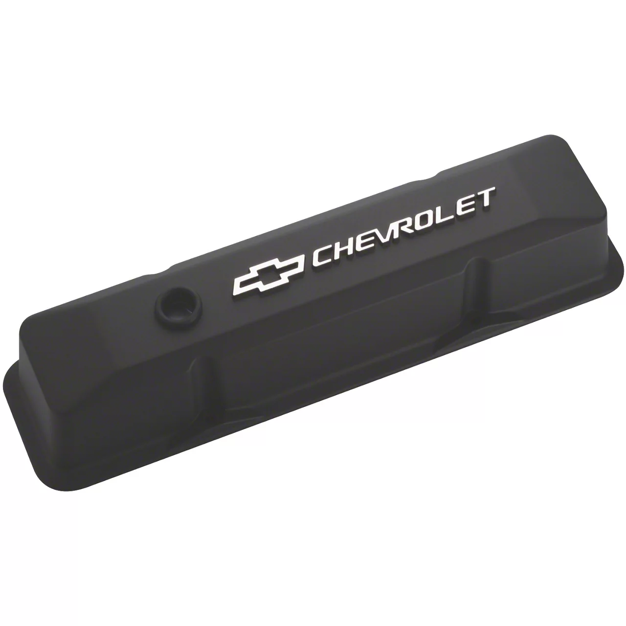 Engine Valve Cover; Tall Style With Baffles; Black Crinkle Finish With Raised Chevy and Bowtie Logos; Fits 1955 to 1986 262-400 Small Block Chevy Engines; Made From Quality Die Cast Aluminum; Officially Licensed GM Product; Sold As 1-Pair