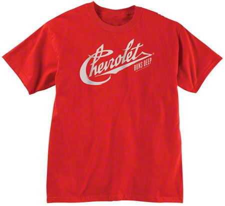 Celebrate the 100 year anniversary of Chevrolet with this great new t-shirt! It combines the original Chevrolet script logo dating back to 1911 and the current "Runs Deep" tag line. A perfect combination of the old and the new. Our great looking 100% cotton medium-weight t-shirt is expertly printed on the front using the most durable water based silk screen printing technology, which results in a softer feel, better wear and wonderful comfort. Don't miss out!