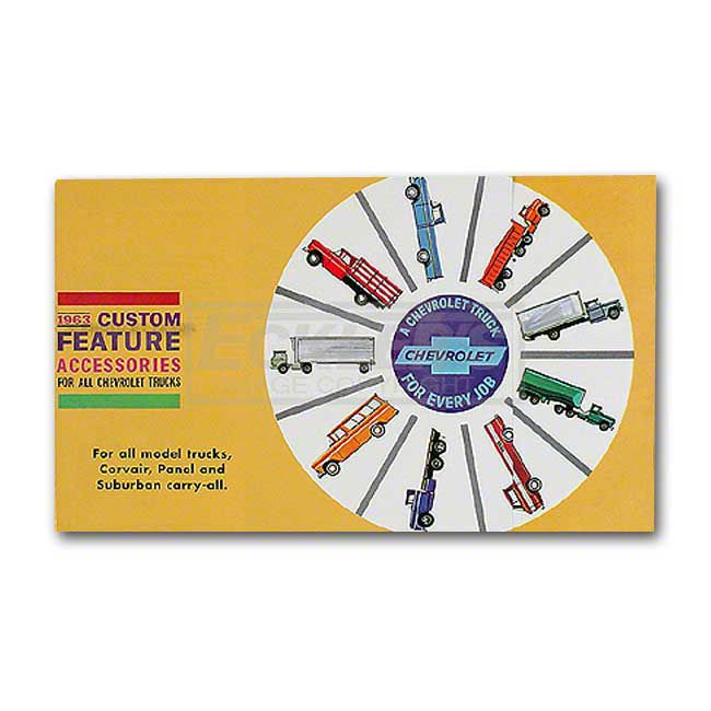 Chevy Truck accessory manuals offer a glimpse into the past. The 1963 Chevrolet Accessories manual from Eckler's Classic Chevy Trucks is a fun, fact filled look at the accessories available for your 1963 Chevy Truck. This handy glove box manual is filled with dozens of photos of rare accessories from the era along with restoration tips and ideas. Complete your 1963 Chevy Pickup literature collection with a Chevrolet Accessories Manual from Eckler's Classic Chevy Trucks.