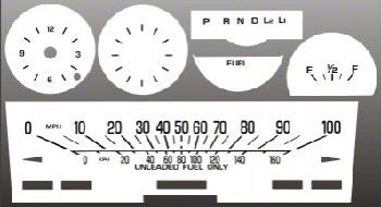 White Face Overlays Included In This Kit: 100 MPH Speedometer,Clock Gauge,Blank Gauge,Shift Indicator Gauge, Fuel Gauge