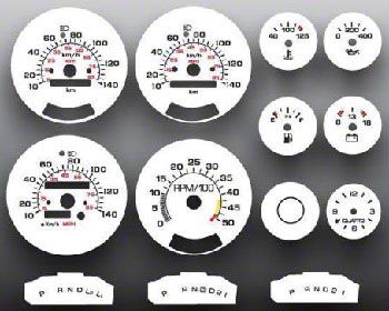 White Face Overlays Included In This Kit: 140 KM/H Speedometer,5000 RPM Tachometer,Temperature Gauge, Oil Temperature Gauge,Small Clock Gauge,Blank Gauge,Shift Indicator Gauge, Fuel Gauge