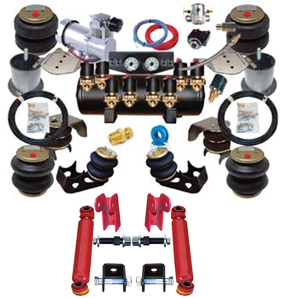 There's nothing sweeter than that perfect stance, with the front low and the rear bumper skyward, showing off those wide rear tires and super detailed suspension. Early Chevy offers this awesome Air Ride suspension kit, complete, for your prized 1949-1954 Chevy. This kit comes complete with bags for all four corners, compressor, control module, relocation kit and all the required plumbing and hardware for a simple, straight forward installation. The robust 3-gallon tank stores enough air for on the fly ride height adjustment. Slam it on the ground during the car show, then adjust the ride height for your ride home, right from the drivers seat. For a cleaner appearance you can mount the control panel in the glove box, or under the das