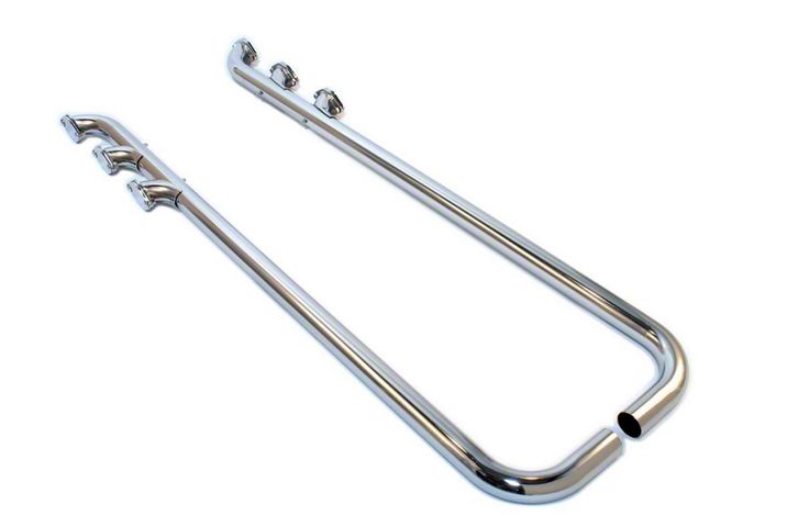 Lake pipes from Eckler's Classic Chevy Trucks will give your Chevy or GMC the look of expensive side pipes without breaking the bank. This Chrome Lake Pipe '4' kit will connect to your headers or even stock exhaust with slight modifications and feature one inlet pipe and three dress up tubes. The built in hi-flo six sided louvered core mufflers tame the decibels but not the horsepower. The preinstalled brackets allow easy installation. Take your Chevy or GMC Truck to the next level with chrome Lake Pipes from Eckler's Classic Chevy Trucks. This universal side exhaust can be used in custom applications on all Chevy and GMC Trucks including 1947-2013.