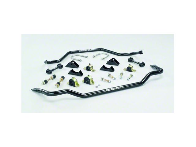 Hotchkis Sport Suspension Tri 5 1955-1957 Chevy Sport Sway Bars dramatically improve the cornering performance and traction of your 1955-57 Chevy with the Hotchkis Sport Suspension Sway Bar Package. Our performance sway bar package offers fine tunable rear roll stiffness previously unavailable for the classic Chevy Tri-Fives. Cars with wider rear tires and high horsepower engines will greatly benefit from this stability package. The kit includes TIG-welded end-links with easy to lubricate polyurethane bushings premium mounting hardware including stainless steel u-bolts laser cut axle mounts polyurethane bushings grade 8 bolts and gloss black powder coat finish. Front sway bar is lightweight durable 1 3/8 in. tubular steel 60% stiffer than the stock sway bar (800 lbs./in). The rear