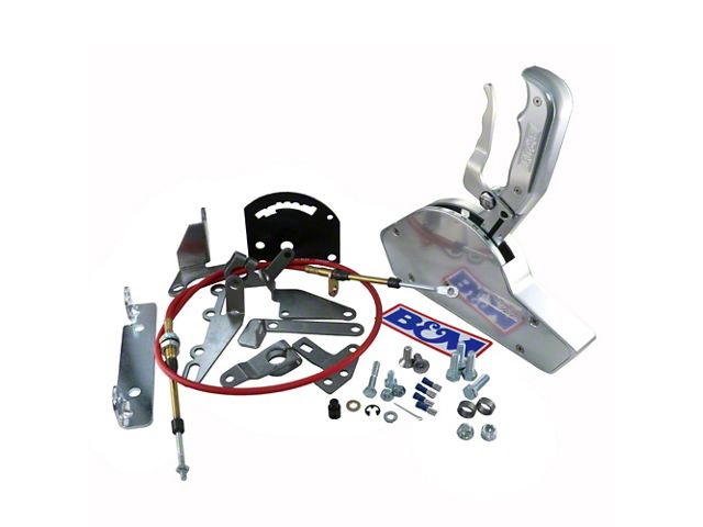 The Magnum Grip Street Bandit Kit includes: 4-ft. cable, neutral safety switch, reverse light switch, 9.31" shift lever, aluminum and polished aluminum finish, aluminum and steel body, gated mechanism, shifter assembly, instructions and mounting hardware. The Magnum Grip Street Bandit Shifter is NHRA/IHRA approved.