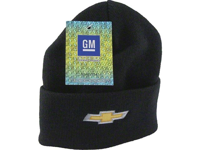Keep warm at that end of the year car show, or show your Bowtie pride during the cold weather months, with this awesome, Chevy Beanie, Chevy Gold Bowtie, Black, the only thing better is rocking one of the cool matching Bowtie jackets we offer. Do not get caught out in the cold, at your next sporting, car, or holiday event, cover up and prevent heat loss with this sweet Chevy Bowtie beanie.