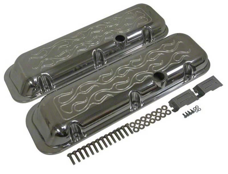 Chevy Big Block Valve Covers, OE Style Flamed Polished Aluminum, 1965-1995
