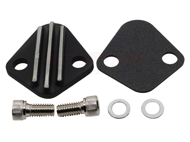 Zinc Alloy finned fuel pump block off plate fits Chevy Big Block engines. It is designed to block off the fuel pump mounting on the cylinder block when a mechanical fuel pump is not used. Includes