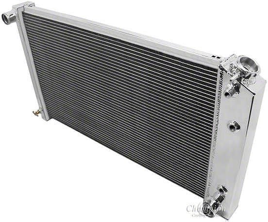 Your 1971, 1972, 1973 or 1974 Chevrolet can get hot...really hot. Bumper to bumper traffic, blistering summer days, and daily driving can add up. The factory copper and brass radiators were barely satisfactory at transferring heat which is why Chevys will overheat. Why take chances with your valuable Chevy engine? Champion Aluminum Radiators from Eckler's Late Great Chevy provide outstanding perofrmance at an excetional value. Aluminum is a far superior to the original copper and brass because it dissipates heat and cools down much more quickly. That means better protection for your investment. Champion's aluminum radiator is 50-75% lighter than your factory copper and brass radiator unit and cools up to 40% better. Plus, the the incredible price makes this Champion radiator an exceptiona