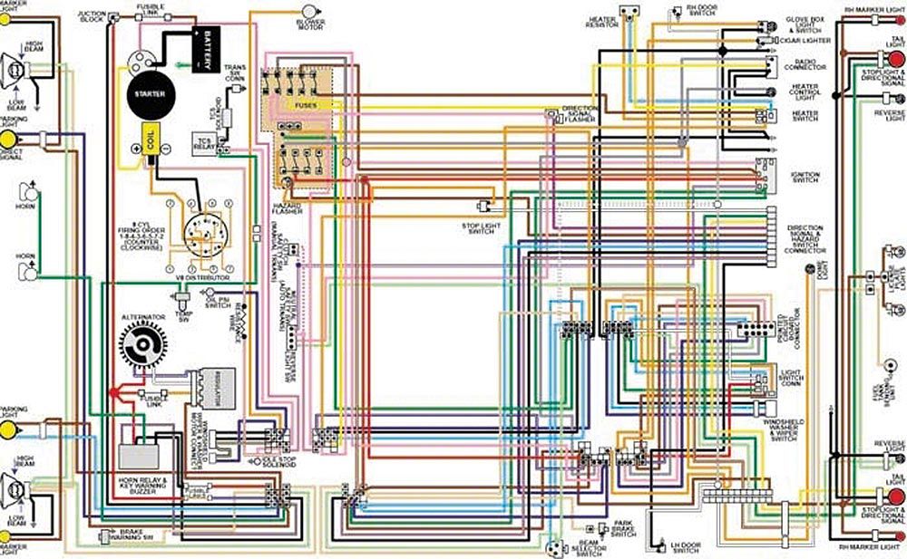 Tired of those hard to read almost impossible to decipher black and white wiring diagrams copied out of 30 to 40 year old shop and repair manuals? We have the solution! All wire colors (including tracers) and component information is from the original factory service manuals. This means the wire colors on the diagram are the same as what is in your car. Diagram covers the complete basic car including: interior and exterior lights, engine & engine compartment, firewall, under dash, instrumentation, etc. All text is crystal clear and easy to read, and all colors are easy to distinguish. Diagrams are laminated in heavy plastic for durability and ease of use. (No more grease smudged expen$ive shop manuals!). Field tested and mother approved with coffee, beer, soda, all kinds of grease,