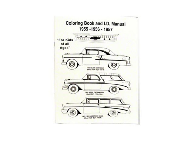 1955-57 Coloring Book & ID Manual for Chevy Bell-Air Coupes, Sedans & Convertibles as well as Nomad Station Wagons. Lists Exterior Colors & 2 Tone Combinations. Over 40 pages of coloring fun! "For Kids Of All Ages"