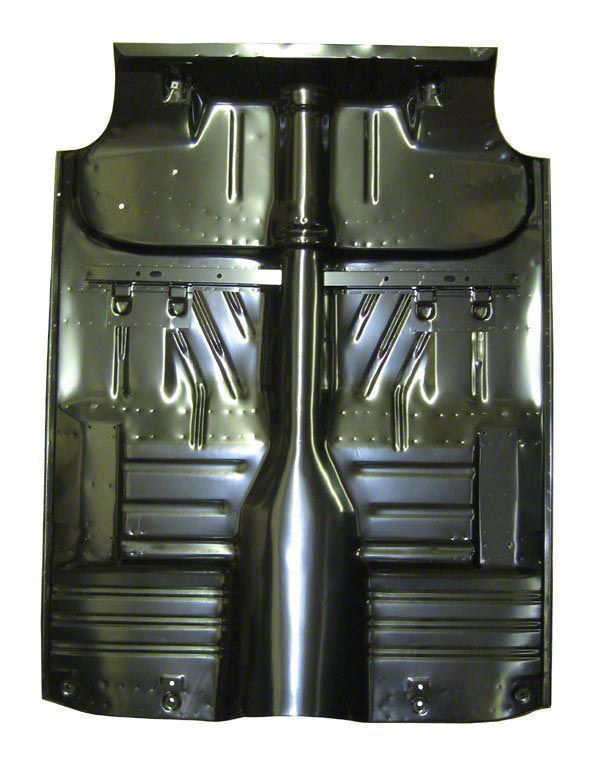 Eckler’s Classic Chevy stamped steel sheet metal floor pan repair panels are crucial when rust rears its ugly head. 1955, 1956, or 1957 Classic Chevy floor pans take a beating over the years and are rarely rust-free. Eckler’s Classic Chevy sources sheet metal floor pans from the world’s premium manufacturers to bring you only the very best for your restoration. Floor pans are stamped on heavy ton equipment from correct gauge steel to ensure factory style contours and maximum rigidity over originals. This complete floor pan that reaches from rocker p