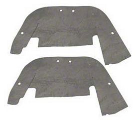 Construction and Appearance. Crafted with durable materials, this two-piece dust shield set is designed for a precise fit. The shields come with staples to secure them firmly in place, ensuring they stay mounted during operation while maintaining the authentic appearance appropriate for classic Chevy vehicles.
