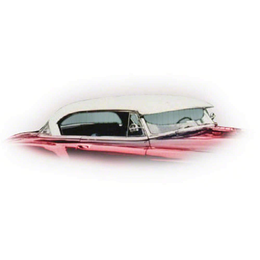 The convertible top on your can dingy and shabby looking over tie. Tree sap, pollutants, harsh chemicals and even sunlight make your top less pliable. Small tears can form from the scissor action of the top frame causing small but damaging leaks. Eckler's Early Chevy knows the importance of keeping your classic looking good. That's why we offer this superior replacement convertible top for your Chevy. These premium convertible tops are computer cut for a precise fit. The 36 ounce pinpoint vinyl is dielectrically sealed to maintain the appearance of the grain. Extra touches include sateen bow sleeves and super strong polyester thread is used for all stitching. Along with the convertible top itself, you receive the installed fixed plastic rear window and the 65" top pad. Don’t let a